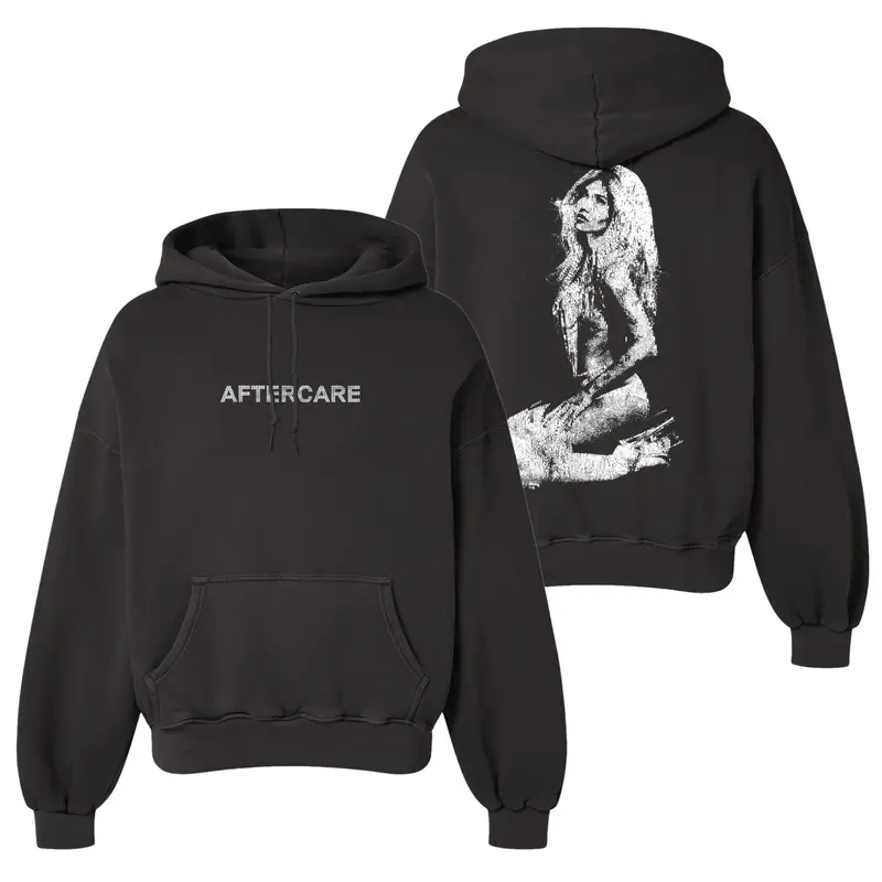 Release date 10th JanPrinted on a 10 oz, 80% cotton / 20% recycled polyester, boxy fit. AFTERCARE in silver rhinestones on the front