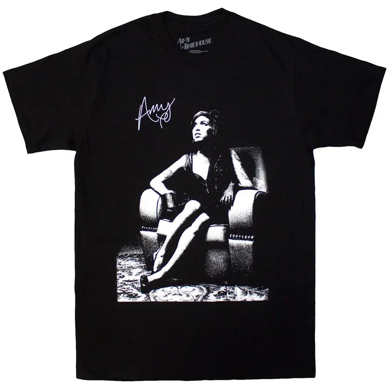 Amy Winehouse Chair Black T-ShirtLarge An official licensed Amy Winehouse T-Shirt featuring the Chair design motif.Material:Soft-Style Cotton.