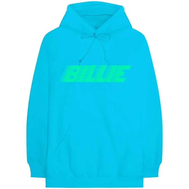Billie Eilish Neon Blue HoodieXX-Large An official licensed Billie Eilish Unisex Pullover Hoodie featuring the 'Logo & Blohsh' design motif. This high quality Pullover Hoodie is available in a neon blue colourway.High quality cotton unisex pullover hoodie
