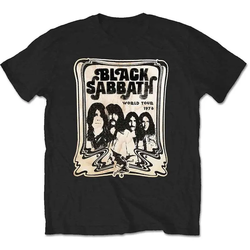 An official licensed Black Sabbath T-Shirt featuring the World Tour 1978 design motif.