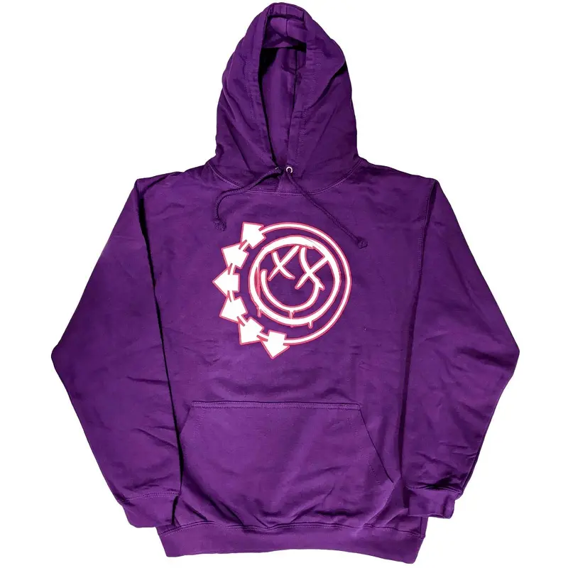 Blink-182 Six Arrow Smile Pink HoodieSmall An official licensed Blink-182 Unisex Pullover Hoodie featuring the 'Six Arrow Smile' design motif. This high quality Pullover Hoodie is available in a pink colourway.High quality cotton unisex pullover hoodie fea