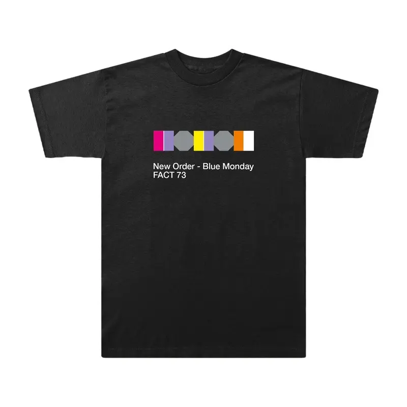 New Order Blue Monday 40th anniversary merchandise, featuring Peter Savilles legendary colour code design. Exclusive to the New Order store.