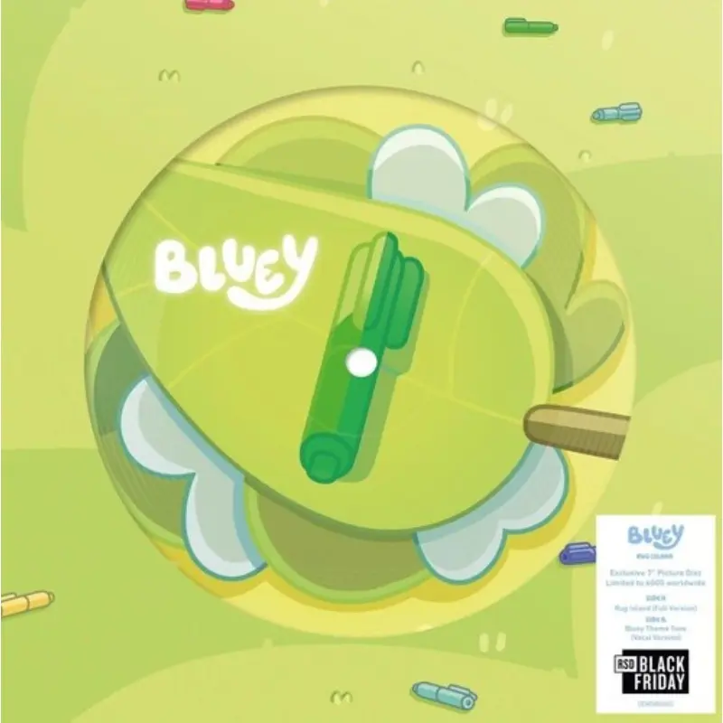 This is a Black Friday 2024 release. Strictly one per customer.7" Picture DiscTracklist:1. Rug Island (Full Version) 2. Bluey Theme Tune (Vocal Version)According to Nielsen, Bluey is the No 1 most- watched series on streaming this year (2024) to- date amon