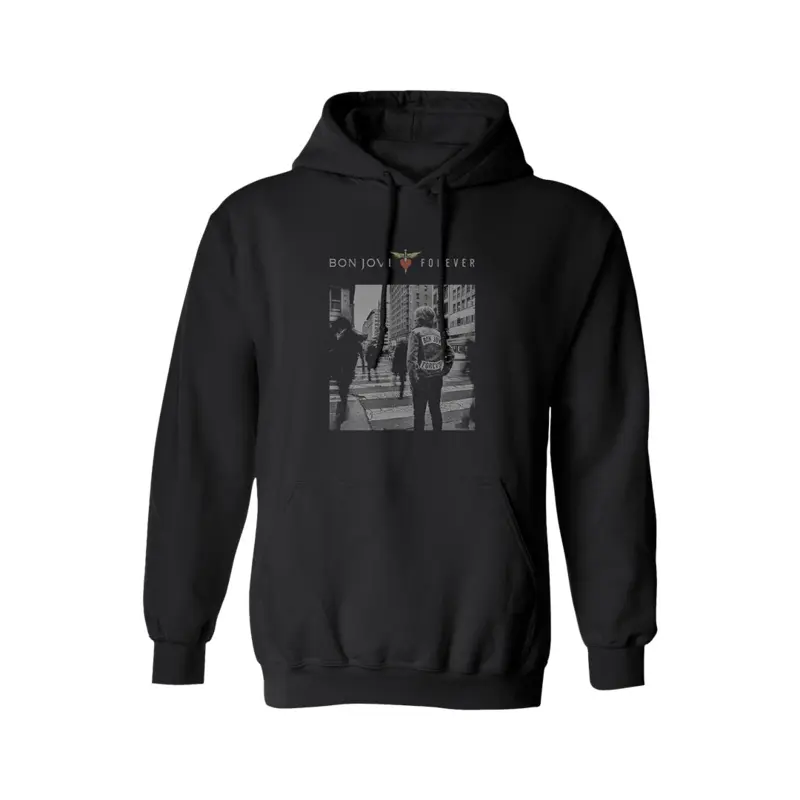 This pullover hoodie features screen printed Bon Jovi Forever logo and cover art from the bands latest album Forever.