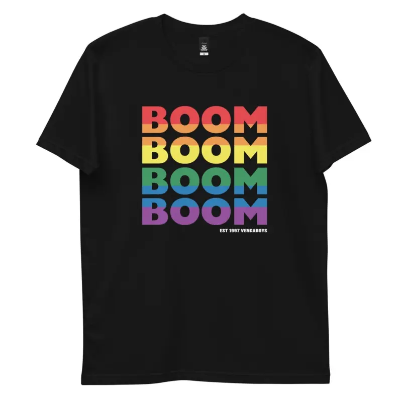 Be the first to review “Boom Rainbow Black T-Shirt”