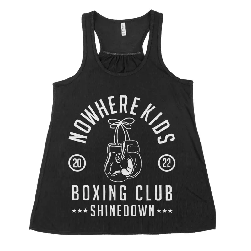The black Shinedown Boxing Club Racerback Tank for the ten year anniversary of their fourth studio album, Amaryllis. The tank includes a 2022 Nowhere Kids Boxing Club visual on the front.