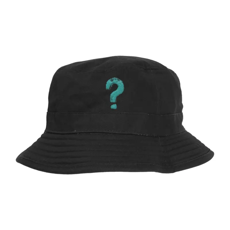 The Why Don’t We ‘Bucket Hat (Black)’ features a blue ‘?’ embroidered on the front of a black bucket hat. *Item is expected to ship to you on or before October 30th. We will ship the product sooner if possible.