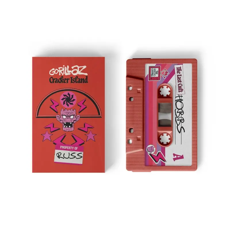 Russel Cracker Island cassette in tangerine orange. Presented in individual card board slipcases, each cassette design features a different coloured cassette casing and includes character art on the back. When all four are lined up together, the spines rev