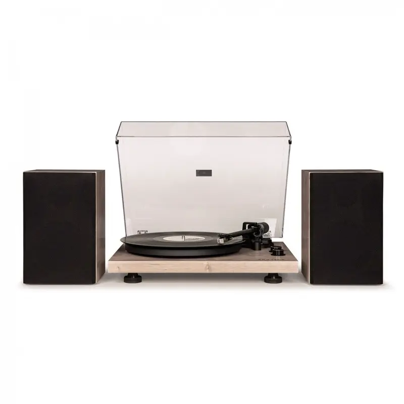 The Crosley C62 is a unique straight-out-of-the-box turntable that's unmatched on the market. It comes with external speakers, aluminum platter, tone arm and adjustable counterweight, built-in Bluetooth receiver and a stylish grey wood finish.This turntabl