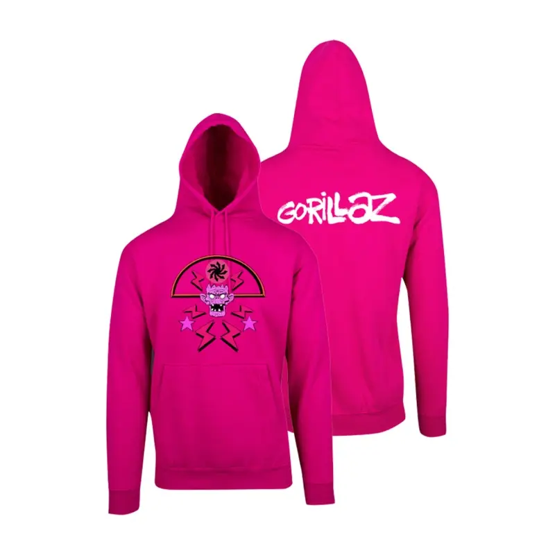 Cult of Gorillaz Hoodie in pink with pazuzu cult logo front print on unisex pink hoodie.