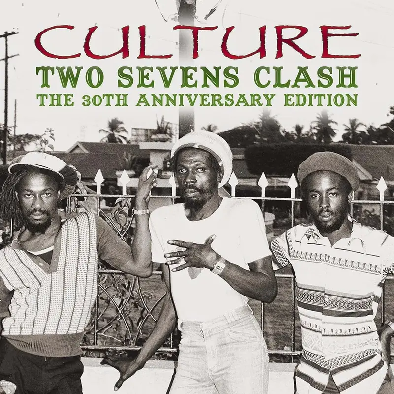 “Two Sevens Clash,” became a massive hit in reggae circles both in Jamaica and abroad. The prophecies noted by the lyrics so profoundly captured the imagination of the people that on July 7, 1977– the day when sevens fully clashed (seventh day, seventh month, seventy-seventh year) a hush descended on Kingston; many people did not go outdoors, shops were closed, an air of foreboding and expectation permeated the city. The song opens with a wailing, harmonized chorus. Culture was singing a new kind of hymn with soaring melodies, prophetic lyrics relating great historical events to present suffering, complex, driving rhythms which made the hymns danceable, and wonderfully subtle arrangements which remade the timeless simplicity of the hymn-like melodies into sophisticated statements. Two Sevens Clash, Culture’s first LP, set a new standard for reggae music– indeed for pop music all over the world. Culture went on to record a series of outstanding albums, remarkable in their consistency, but Two Sevens Clash remains their masterpiece– an inspired work of enduring power.
