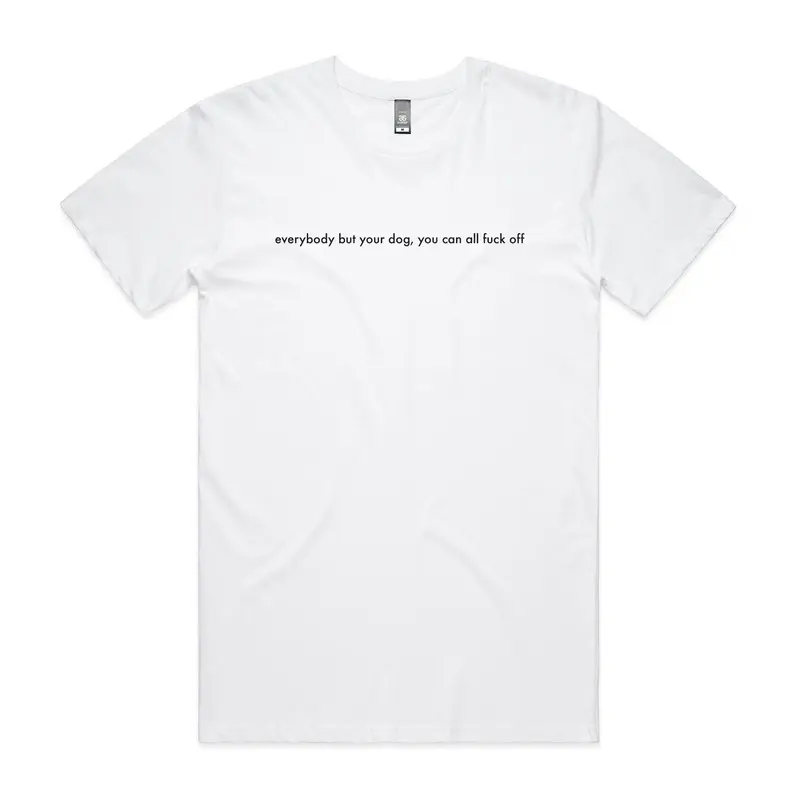 The GAYLE Everybody But Your Dog Lyric Tee features lyrics printed on the front of a white unisex t-shirt.This product is made to order, please allow extra time for your order to be produced and dispatched.