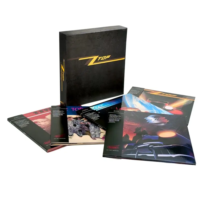 ZZ Top delivers the fireworks on July 4 with FROM THE TOP (19791990), a limited-edition collection from Rhino High Fidelity (Rhino Hi-Fi) that trails the Texas trio on the road to worldwide fame. Following the first volumes sellout last year, the sequel features five albums from the height of the bands mainstream success – FROM THE TOP (19791990) includes DEGELLO (1979), EL LOCO (1981), ELIMINATOR (1983), AFTERBURNER (1985), and RECYCLER (1990).