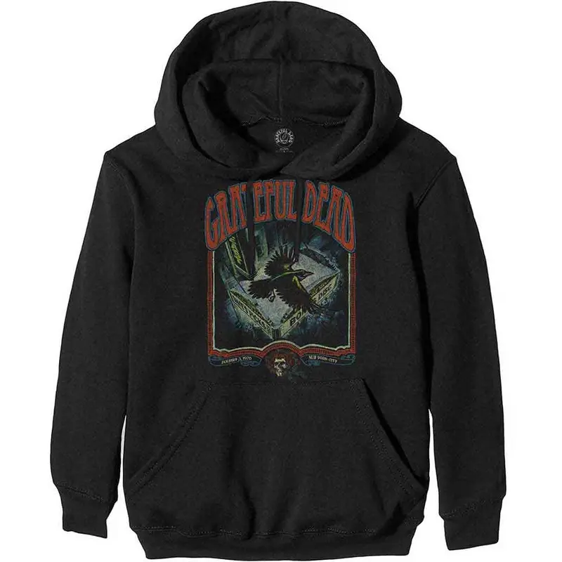 An official licensed Grateful Dead Unisex Pullover Hoodie featuring the ‘Vintage Poster’ design motif. This high quality Pullover Hoodie is available in a black colourway.