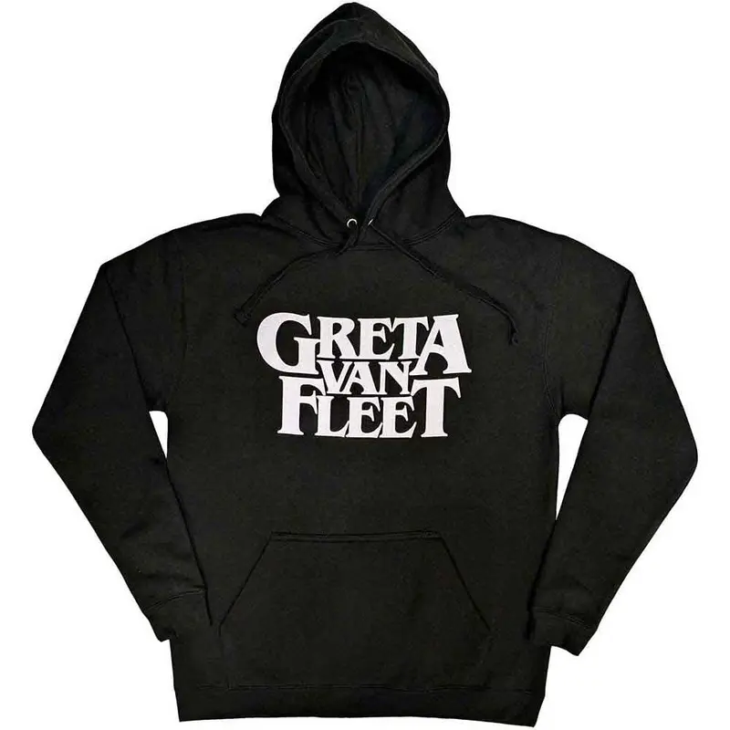 An official licensed Greta Van Fleet Unisex Pullover Hoodie featuring the ‘Logo’ design motif. This high quality Pullover Hoodie is available in a black colourway.