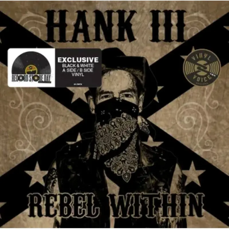 Unlike most post-millennium country “outlaws,” Hank Williams III has actually been fighting against something concrete instead of just nursing a bad attitude. Hank III likes his music as strong as his drink, and includes both his hard-edged trad-styled country and his “hellbilly” thrash metal project Assjack. There’s an undercurrent of metal/punk creeping through a few tracks on Rebel Within (the bursts of Cookie Monster vocals on the title cut and the breakneck finale of “Drinkin’ Over Momma”), but for the most part, this is the most straight forward country music Hank III has released since 2002’s Lovesick, Broke and Drifitin’; Billly Contreras fiddle, Andy Gibson’s steel guitar, and Johnny Hiland’s guitar give these songs a classic acoustic honky tonk feel while adding just enough electric elements to keep this from sounding like an exercise in retro-nostalgia. More than one writer has noted that Hank III sounds a lot more like his grandfather Hank Williams than his dad Hank Willimas Jr. Ever did, and he writes the kind of melodies that suit his weathered, soulful twang just right. Rebel Within captures a tone of bad luck and trouble with a grace and gravity that’s manna from heaven for fans of 100-proof roadhouse music. Rebel Within is strong, heartfelt work that proves Hank III hasn’t turned his back on pure country music. Pressed on acid-washed colored vinyl!