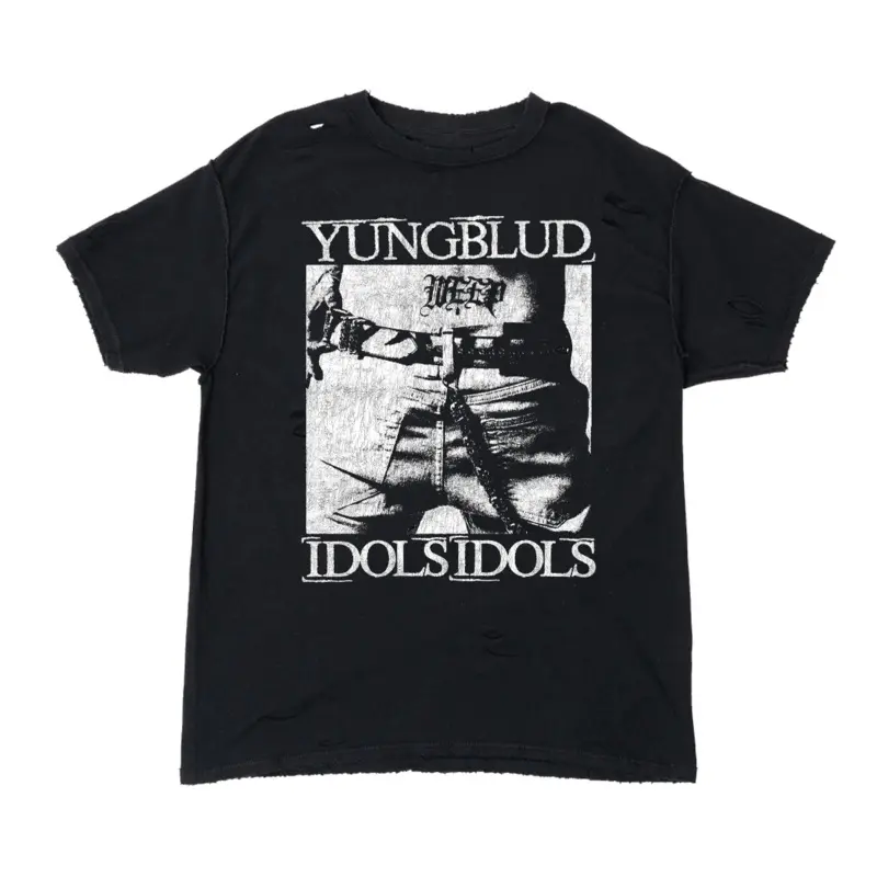 DISTRESSED, BLACK UNISEX INSIDE OUT TEE FEATURINGIDOLSSCREEN PRINTED GRAPHIC