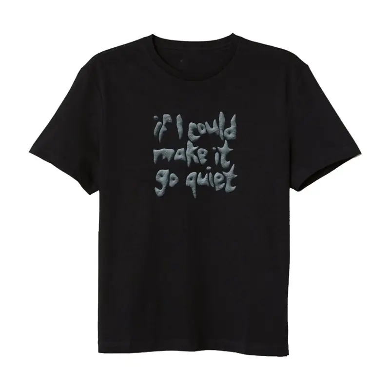 A soft jersey-knit black t-shirt in a standard fit, featuring the IICMIGQ (if I could make it go quiet) album logo. Constructed from a 65% poly /35% ring spun cotton Gildan blank (Gildan was named one of theworlds most sustainably managed companies).
