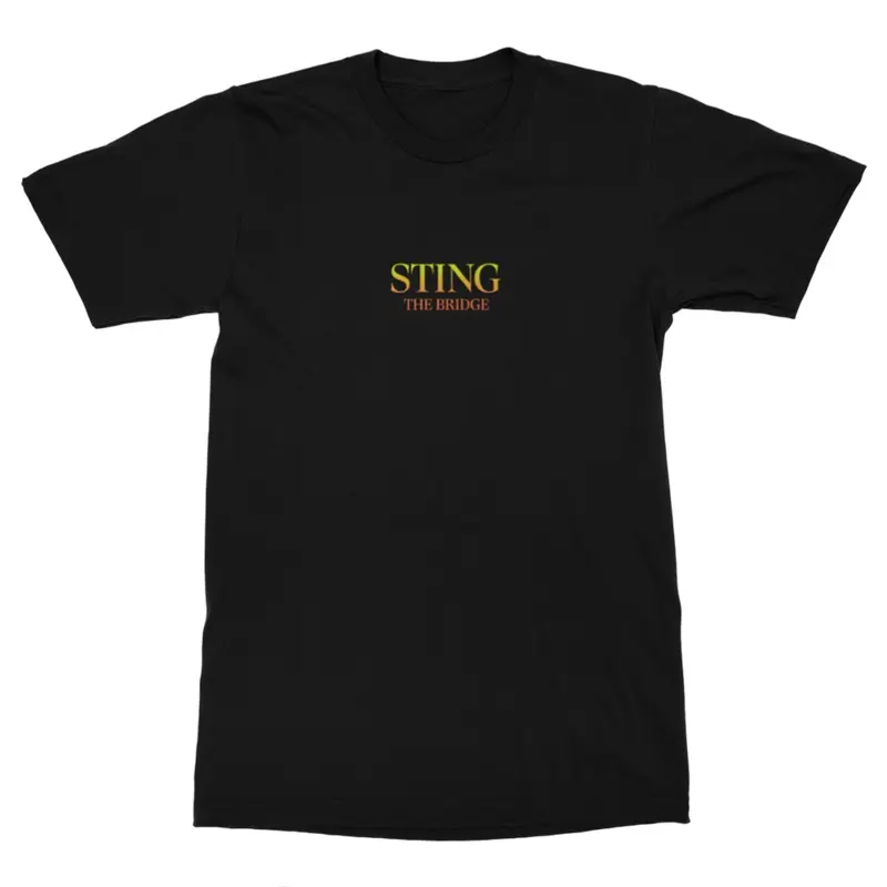 Black, unisex t-shirt featuring The Bridge logo design on the front.