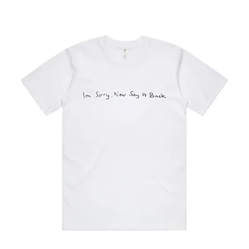 I’m Sorry, Now Say It Back printed on a white T-Shirt