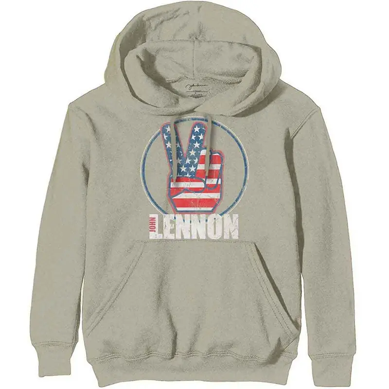 John Lennon Peace Fingers US Flag Sand HoodieX-Large Official licensed John Lennon Unisex Pullover Hoodie featuring the 'Peace Fingers US Flag' design motif. High quality Pullover Hoodie available in a sand colourway.High quality cotton unisex pullover hoo
