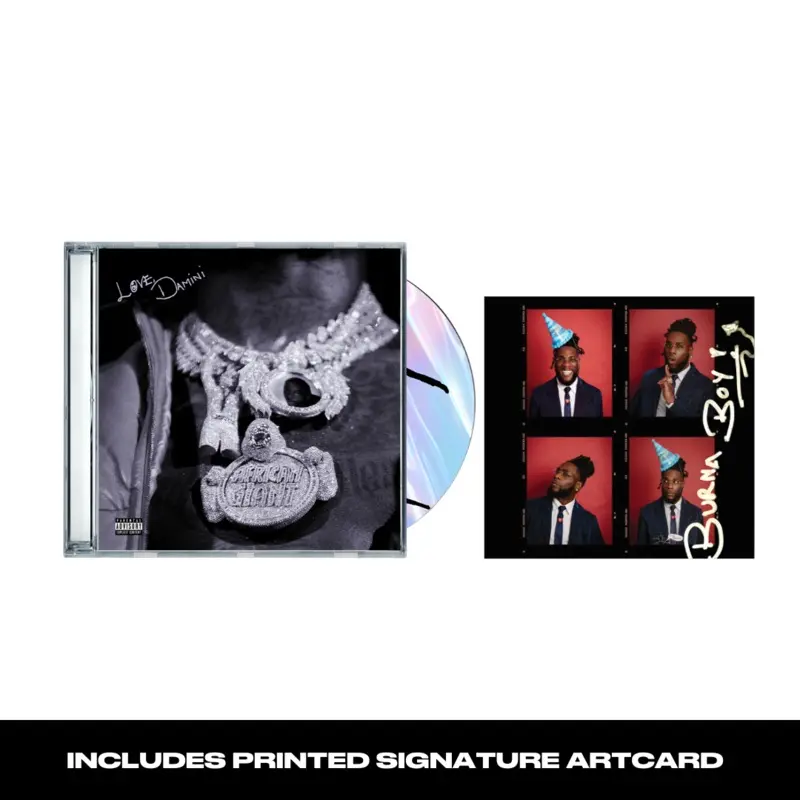 Burna Boy's new albumLove, Damini on CD, alternate cover 1. Includes an artcard with a PRINTED signature."Love, Damini" 4- part exclusive cover seriesThis CD is 1 of 4.