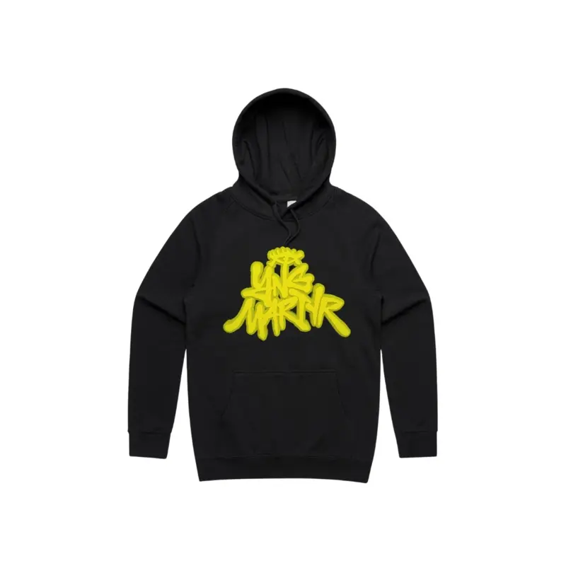 'YNG Martyr' logo printed on a black unisex hoodie.Regular fitMid weight, 290 GSM80% cotton 20% polyester anti-pill fleecePullover hood, raglan sleeves, kangaroo pocket, lined hood, tonal drawcordSleeve cuff ribbing, preshrunk to minimise shrinkage
