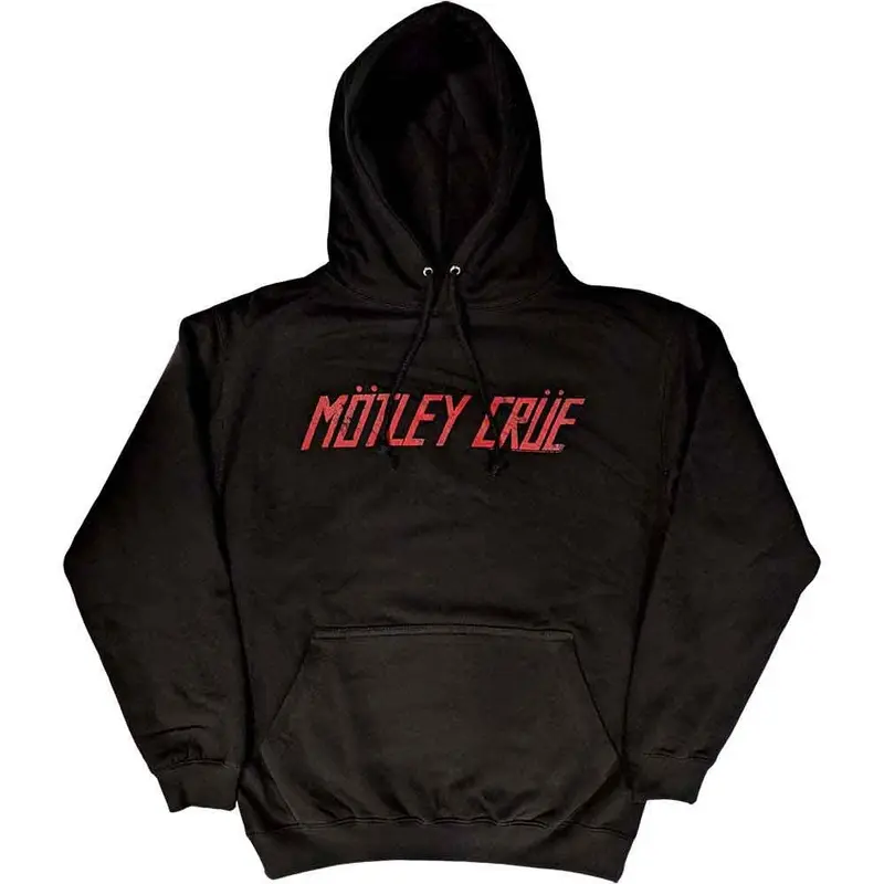 Motley Crue Distressed Logo Black HoodieLarge An official licensed Motley Crue Unisex Pullover Hoodie featuring the 'Distressed Logo' design motif. This high quality Pullover Hoodie is available in a black colourway.High quality cotton unisex pullover hood