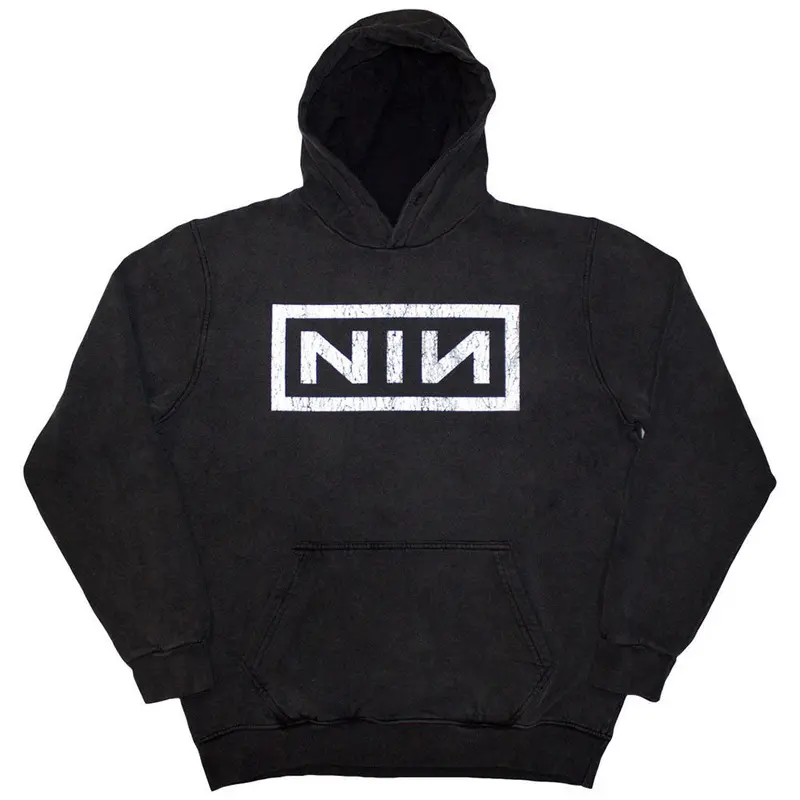 An official licensed Nine Inch Nails Unisex Pullover Hoodie featuring the ‘NIN logo’ design motif. This superior quality pullover hoodie is available in a charcoal grey stone wash colourway.