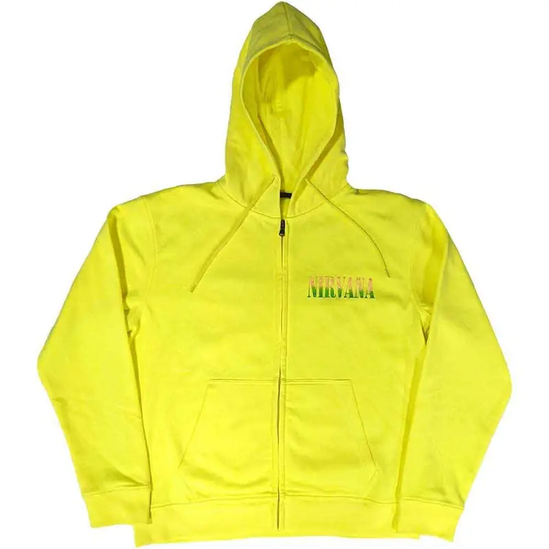 Nirvana Sorbet Ray Happy Face Neon Yellow Zipped HoodieSmallAn official licensed Nirvana Unisex Zipped Hoodie featuring the 'Sorbet Ray Happy Face' design motif. This high quality Zipped Hoodie is available in a neon yellow colourway.High quality cotton un