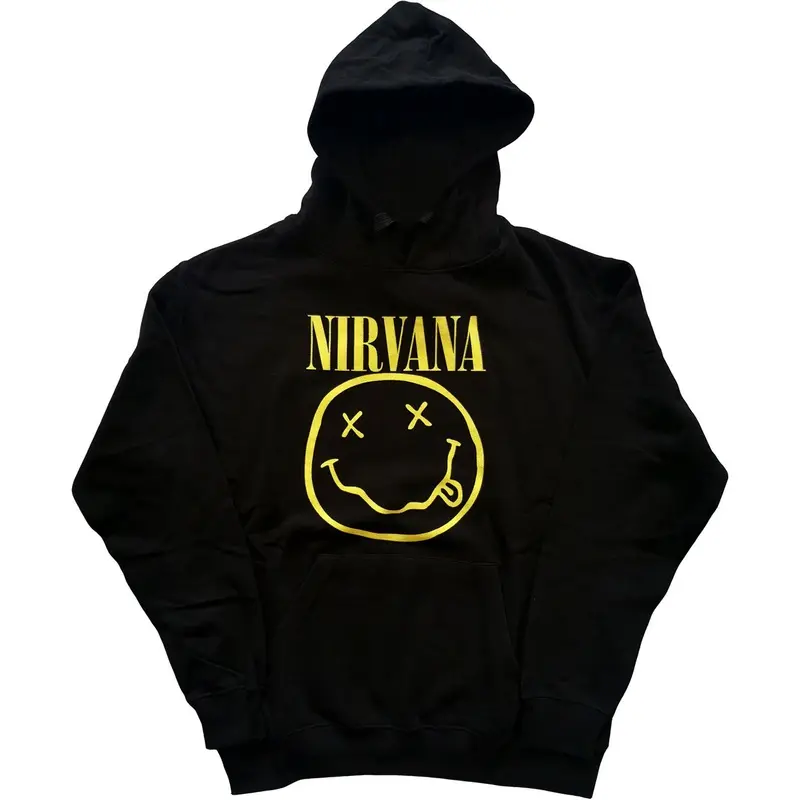 Nirvana Yellow Happy Face Black HoodieXX-Large Official licensed Nirvana Unisex Pullover Hoodie featuring the 'Yellow Happy Face' design motif. High quality Pullover Hoodie available in a black colourway.High quality cotton/poly unisex pullover hoodie feat