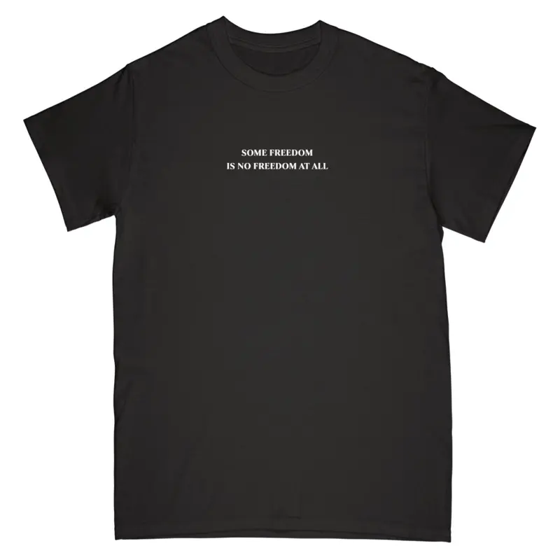 Embroidered text on 100% cotton t-shirt. Preshrunk standard fit & unisex sizing.