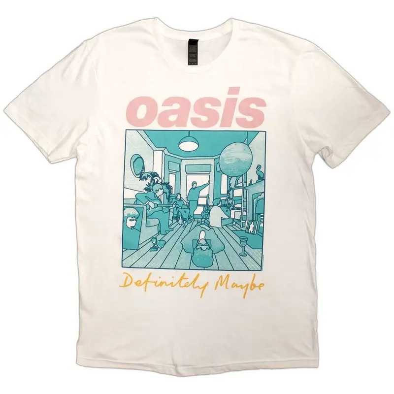 Oasis Definitely Maybe Illustration Colour White T-ShirtX-LargeAn official licensed Oasis T-Shirt featuring the Definitely Maybe Illustration Colour design motif.Material:Soft-Style Cotton.