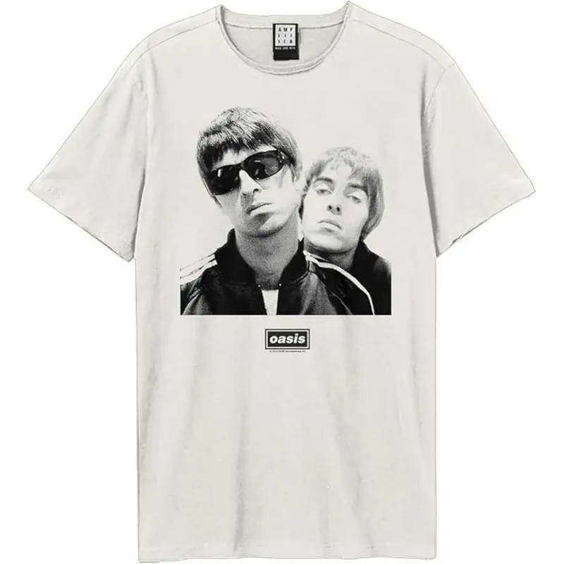 An official licensed Oasis T-Shirt featuring the Noel & Liam Photo design motif.