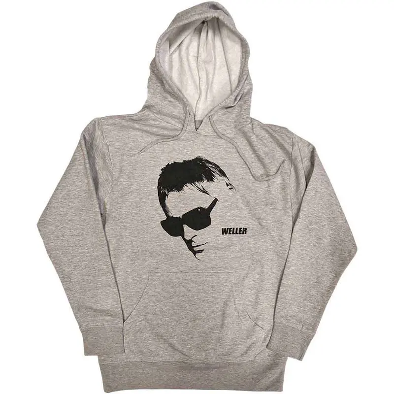 Paul Weller Glasses Picture Grey HoodieXX-Large An official licensed Paul Weller Unisex Pullover Hoodie featuring the 'Glasses Pic' design motif. This high quality Pullover Hoodie is available in a grey colourway.High quality cotton unisex pullover hoodie