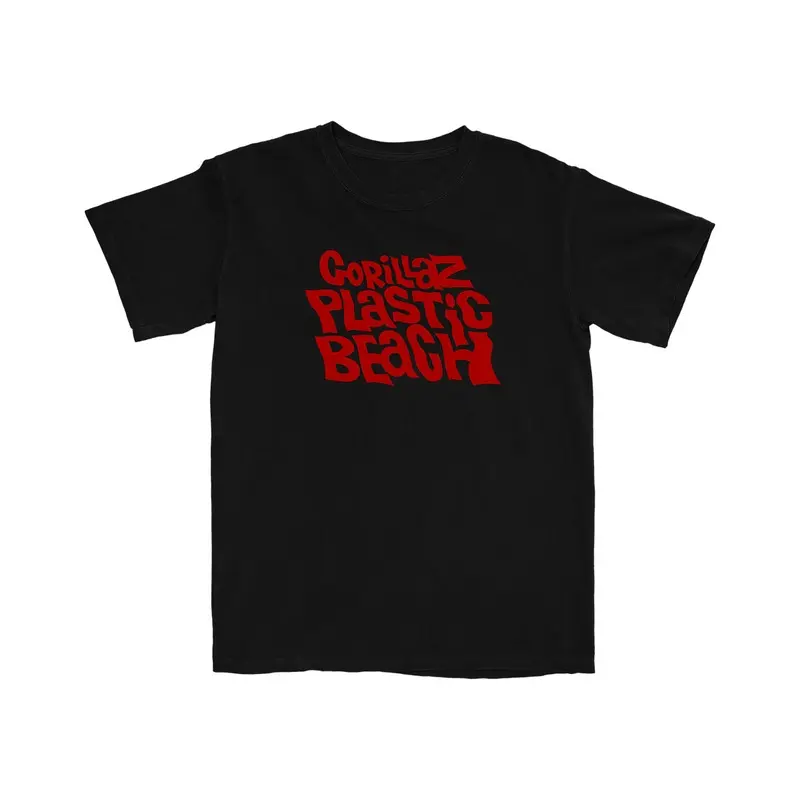 Black T-shirt commemorating 10 years of Plastic Beach.