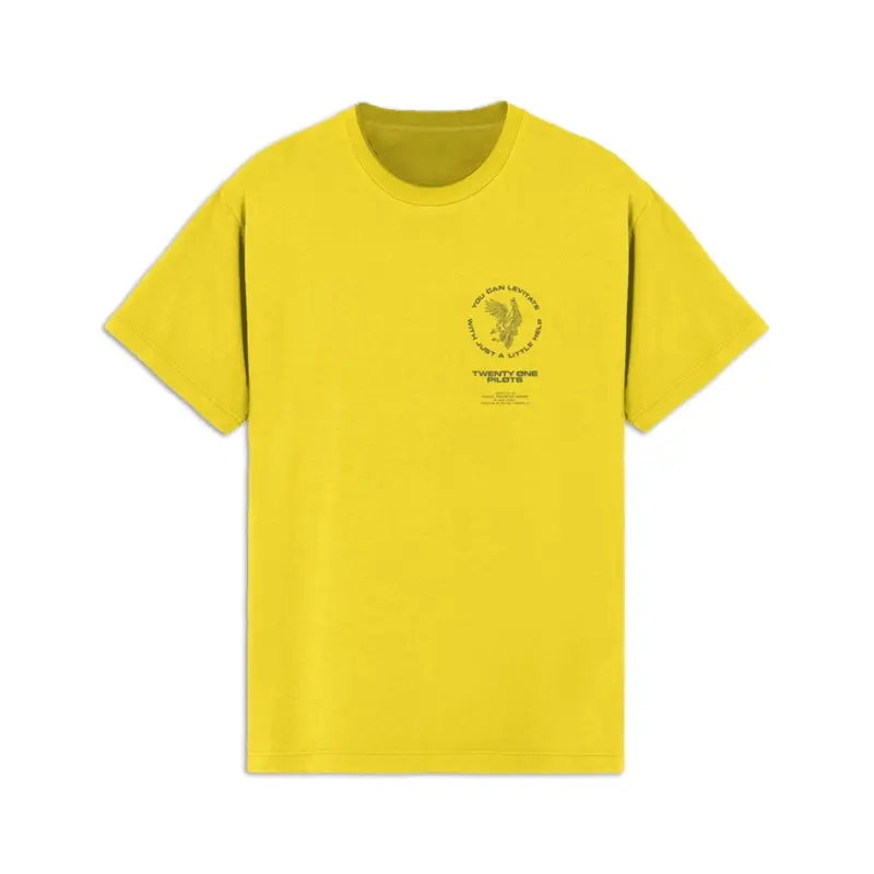 The Poacher Stack T-Shirt Bundle here features lyrics from the song Levitate on a yellow unisex t-shirt.https://store.twentyonepilots.com/help-center#q12
