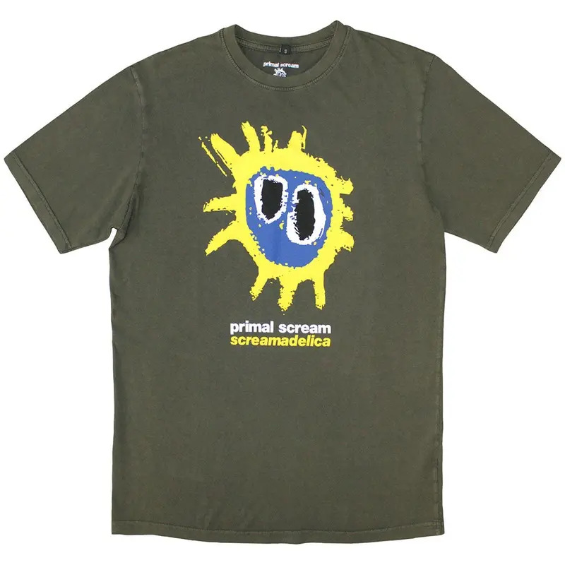 Primal Scream Screamadelica Green T-ShirtLarge An official licensed Primal Scream Stone Wash T-Shirt featuring the Screamadelica design motif.Material:Soft-Style Cotton.