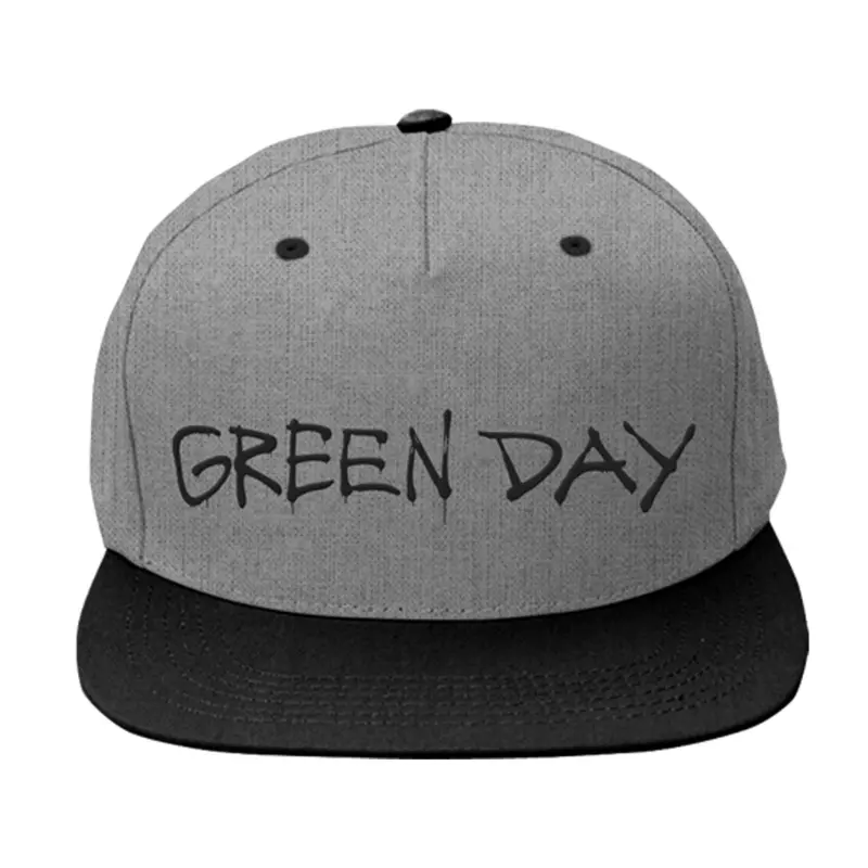Grey and black snapback hat with Green Day logo on the front.`