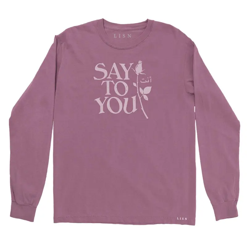 Screenprinted front graphic on a pink longsleeve t-shirt.