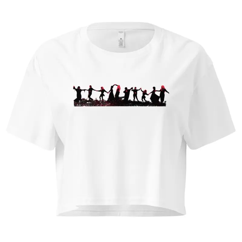 PRODUCT DETAILS: - White baby t-shirt - Black and red silhouette print at front chest - Slim fit - Short sleeves - Superfine rib - Scoop neck - Cropped length - Heavy weight COMPOSITION:100% CottonCARE:- Machine wash cold with like colours- Do not bleach-