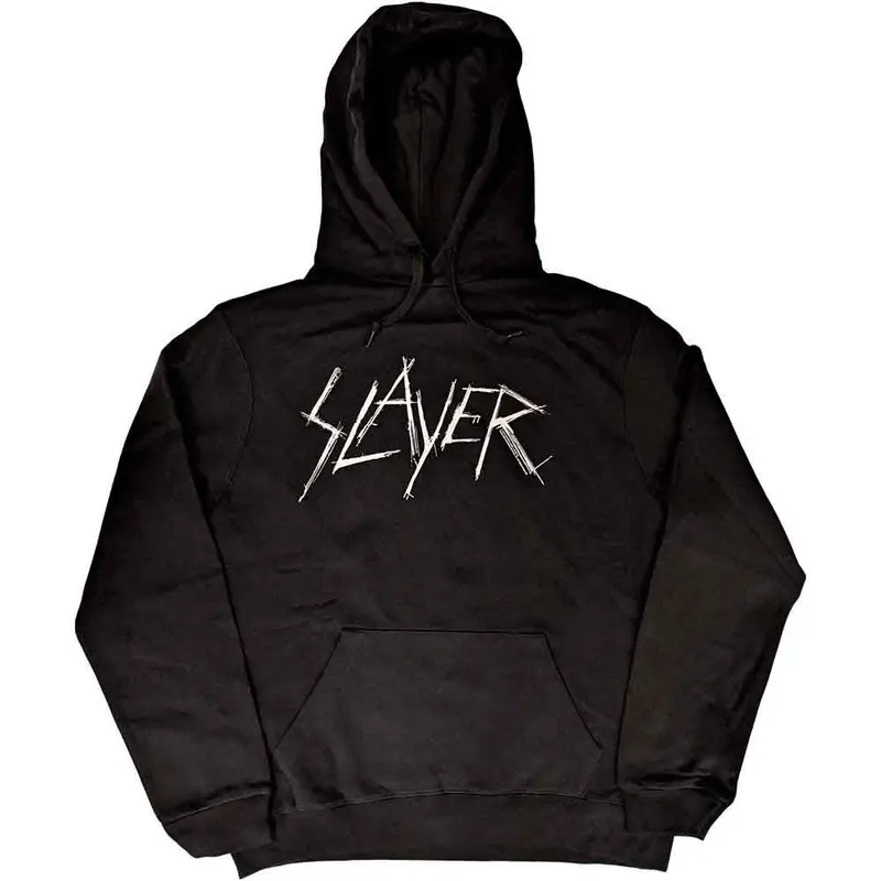 An official licensed Slayer Unisex Pullover Hoodie featuring the ‘Scratchy Logo’ design motif. This high quality Pullover Hoodie is available in a black colourway.