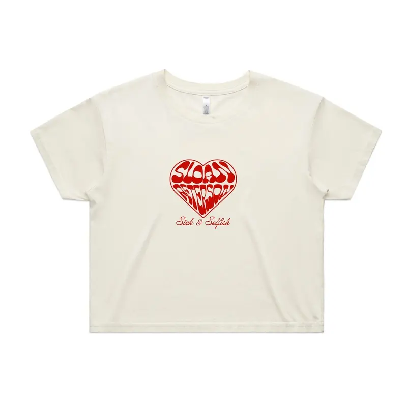 Sloan Peterson's Ausmusic Crop T-shirt 2022. Artwork is embroideredAusmusic T-Shirt Day is a massive nation-wide celebration of Australian music that reminds us how lucky we are to have such a strong local music scene, with many highly talented and success
