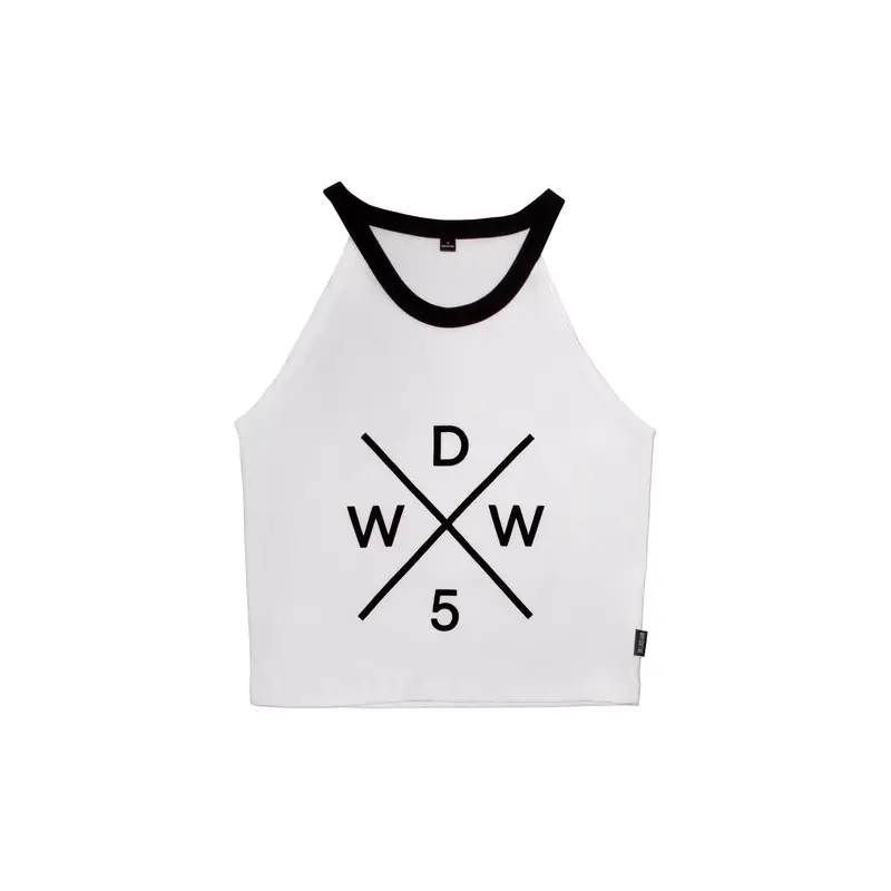 The Why Don’t We Strap Tank Top Here is a White Tank Top with a black strap. Custom made. 60% Cotton, 40% Polyester. The design features the WDW5 Cross Logo on the front.