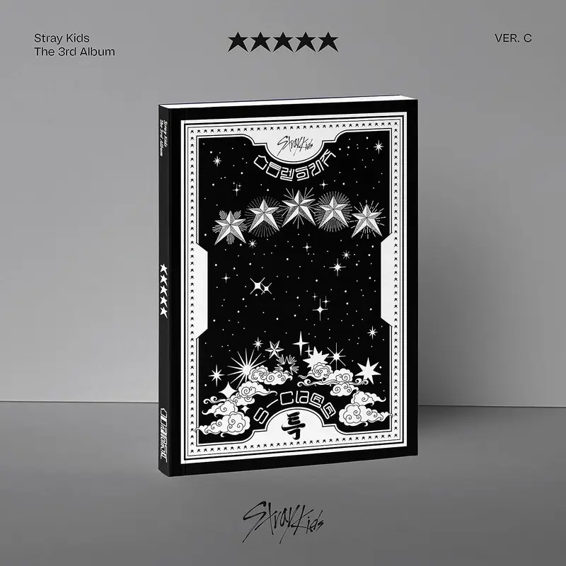 After a groundbreaking year with two consecutive Billboard 200 #1 albums, Stray Kids is back with brand new release 5-STAR. 5-STAR is available in three versions: VER. A, VER. B, and VER. C. All versions contain: Photobook (unique to each ver.), CD (unique