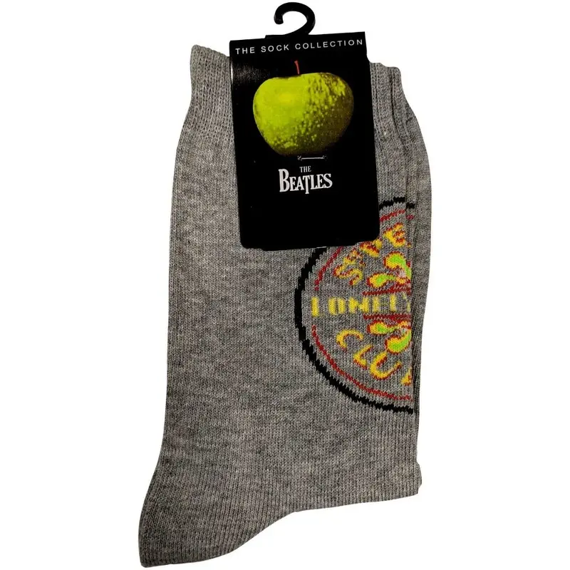 Official licensed unisex 80% Cotton - 18% Polyester - 2% Elastane Ankle Socks featuring The Beatles 'Sgt Pepper' design motif. This high quality hosiery is available in a grey colourway.UK SIZE 7 - 11