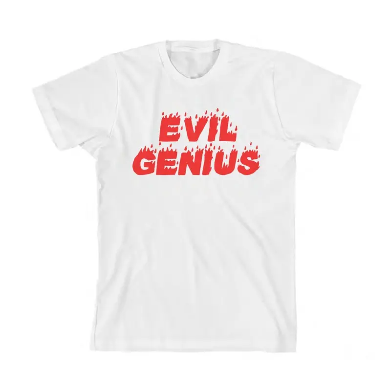 The Evil Caricature T-shirt features “Evil Genius” printed on a super soft 100% cotton white t-shirt.