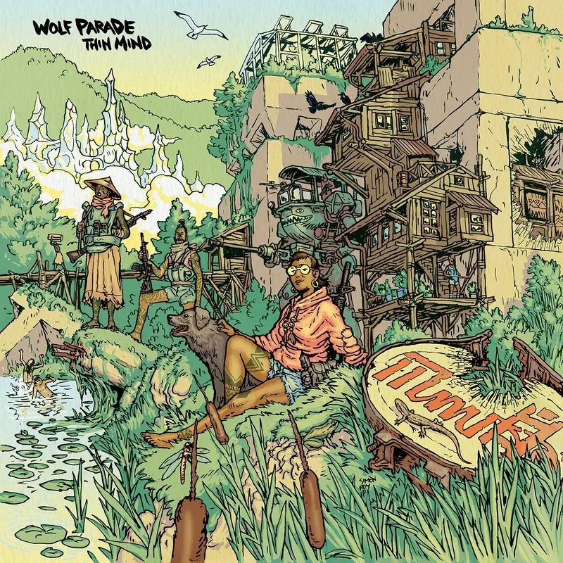 Thin Mind has sci-fi, post-apocalyptic and dystopian narratives interwoven throughout. These themes emerged while working at Risque Disque, which Boeckner jokingly describes as a Dutchmans failed utopia, a problematic structure with a post-apocalyptic vibe: the studio is housed in a stone barn hand-built by the Dutchman in the middle of the woods, using local materials and based on his memory of a building he loved growing up in the Netherlands. Thin Mind finds the core members of Wolf Parade working as a trio, as they did on past albums Apologies to the Queen Mary and At Mount Zoomer, with songwriting duties evenly split between singers Dan Boeckner and Spencer Krug. The album includes the singles Forest Green, Julia, Take Your Man Home, and Against the Day, the latter of which features a rare, co-vocal performance from Boeckner and Krug.