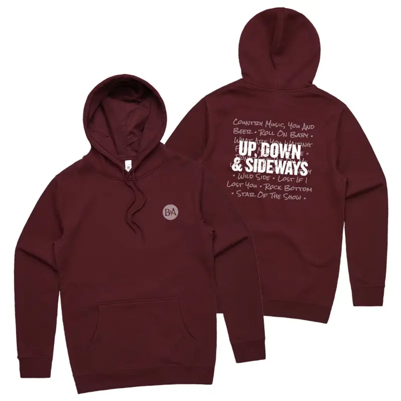 Screenprint front & back on cotton/polyester blend fleece. Unisex sizing.
