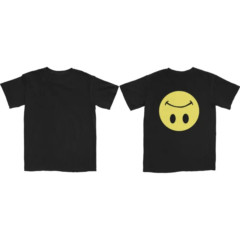 The Lil Uzi Vert Uzi Smile T-shirt here features the smiley face from the Futsal Shuffle single artwork on the back. The design is printed on a black colored next level brand t-shirt. 100% Cotton.